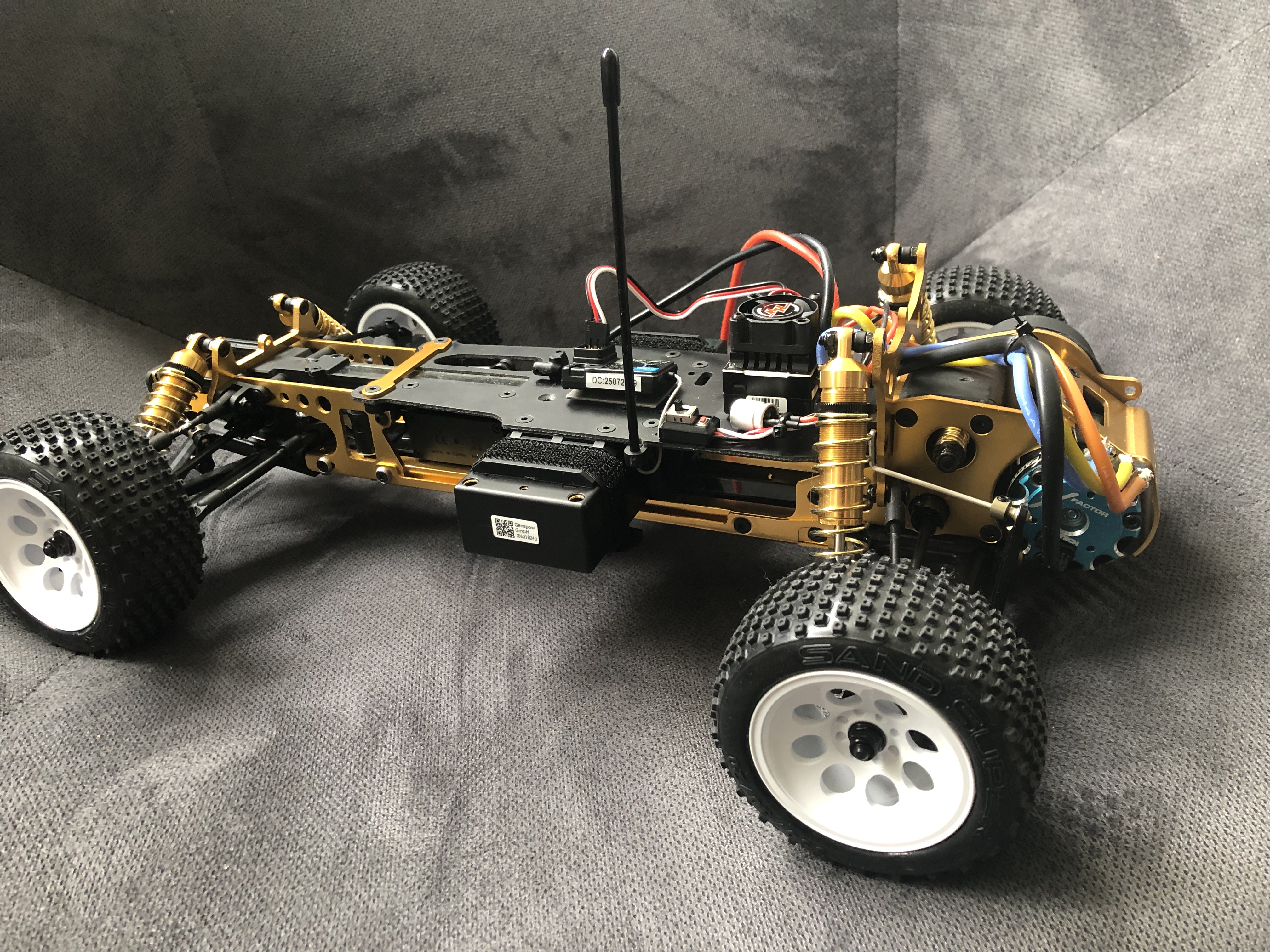 Il est équipé avec un 13.5t Trinity X Factor ... grosse patate avec des rapports un peu long ça va bien marcher... peut être que j’arrêterai les wheeling incontrôlés