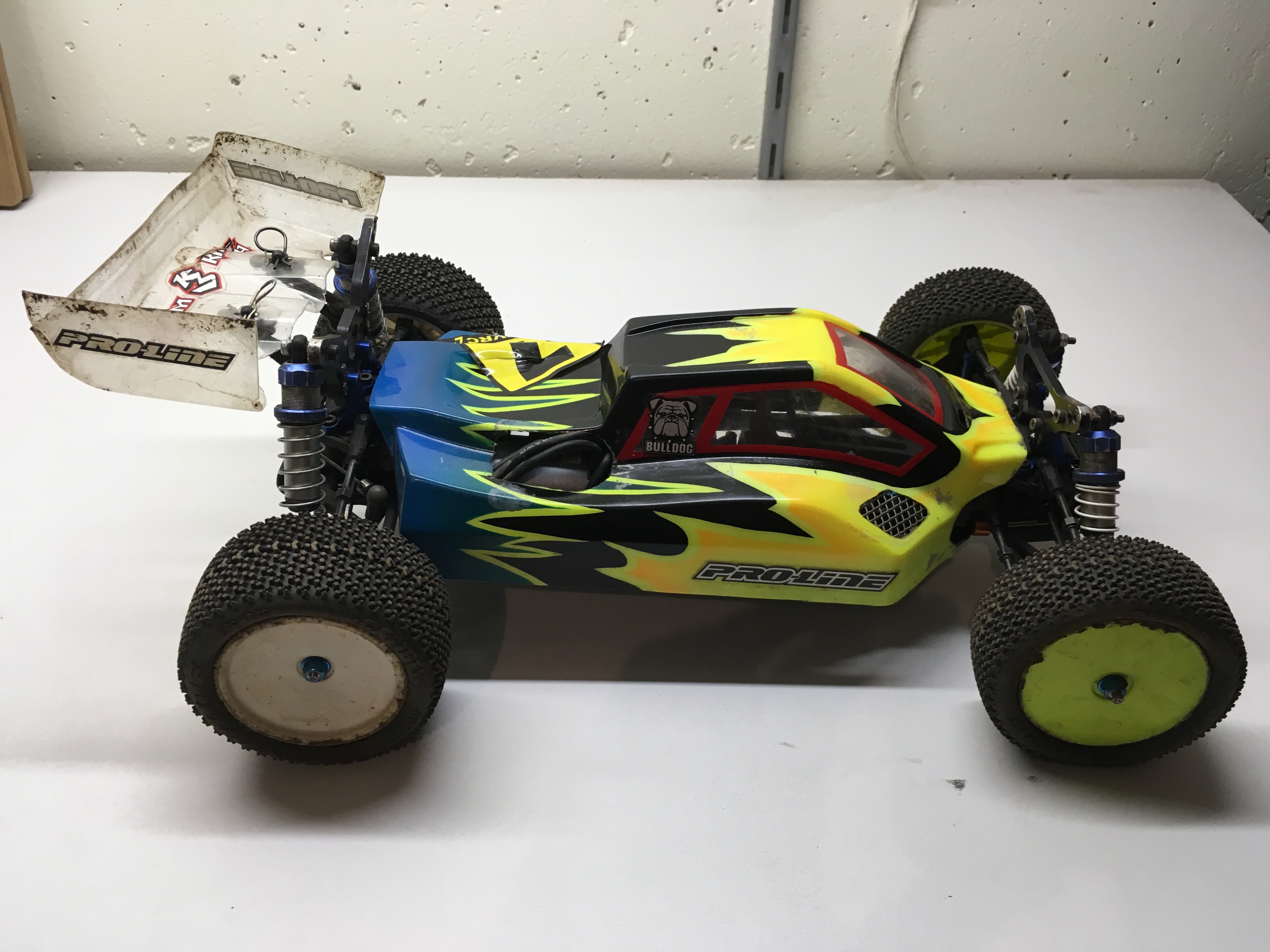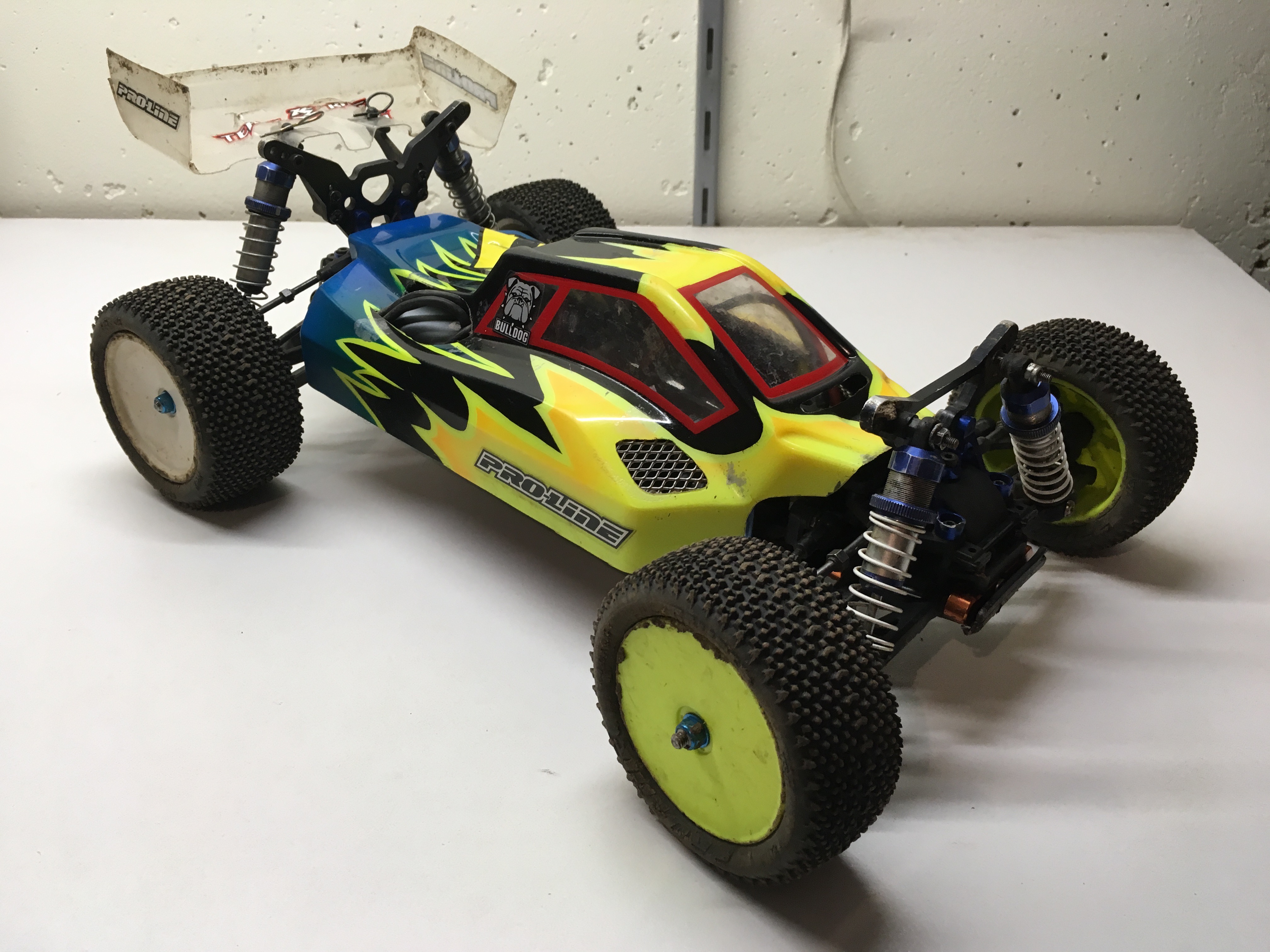 Pneumatique : J'ai opté pour des Proline https://www.rcteam.fr/pneus/15534-proli ... ge-search2, ils sont idéals pour le sec et le poussiéreux, en revanche, pour les long mois d'hiver j'utilise des tamiya, avec des petits picots très dure.