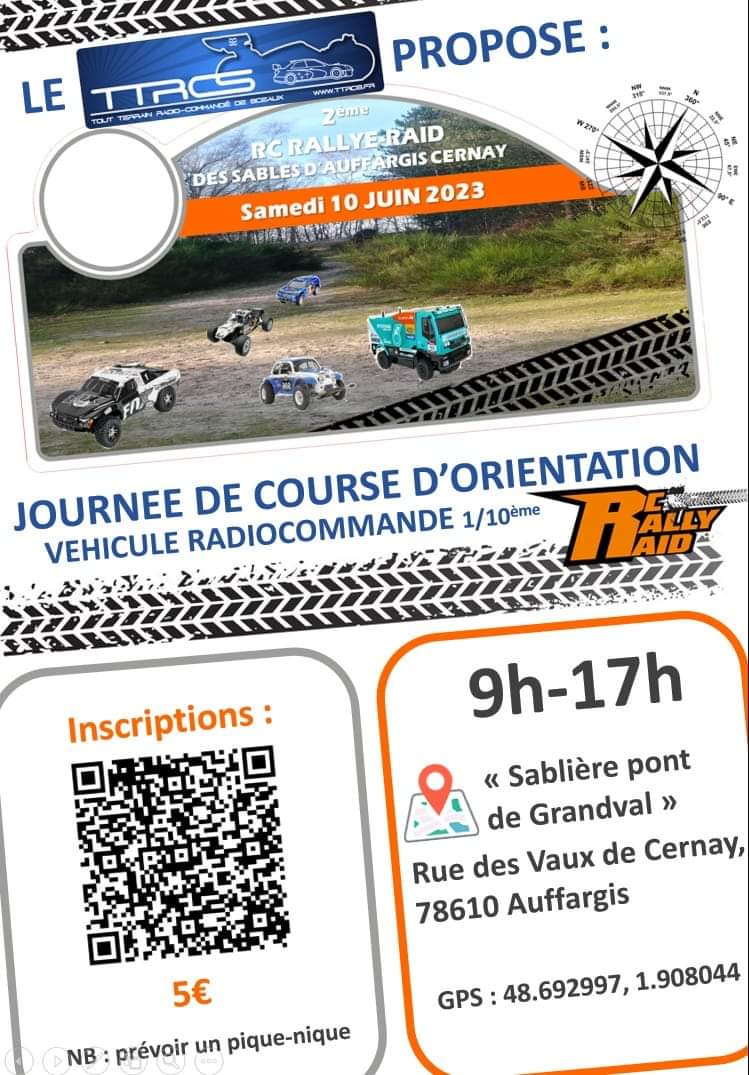 Bloquez vos agenda : Pour la 3ème fois en France, le TTRCS organise un Rallye Raid radiocommandé et revient sur le site où tout a commencé : la sablière d'Auffargis-Cernay.